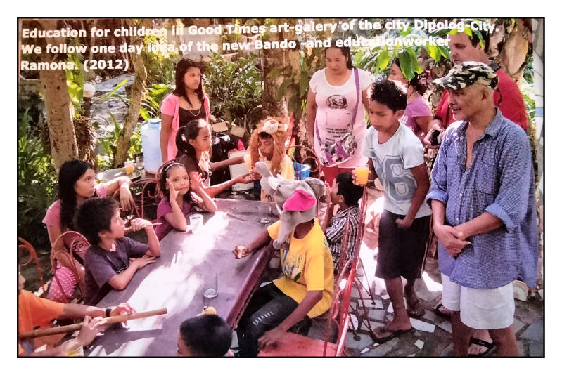 I was also very touched at the same time by a Belgian group called "De Internationale Nieuwe Scene". This very special group also named the problems of the European denominations with their very big abuses. But apart from that, this group was for me the very great example of text, image, sound and movement that can work together perfectly for me. The 4 elements that I carried with me as forms with which people can express themselves in different talents, I have always carried with me. In 2006 this could lead to the establishment of the Bando foundation, the foundation that I officially established with Hannah (the woman who became my other half a year later). Hannah was able to lead me to the very special church life. A church with hundreds of special songs that are sung once or several times a week with many people within the church. On January 1, 2007 I was baptized in a beautiful sea at Dapitan and I still think back to that with great pleasure. Hannah made two very special drawings for the Bando foundation. These 2 drawings still stand for the Bando foundation to this day.