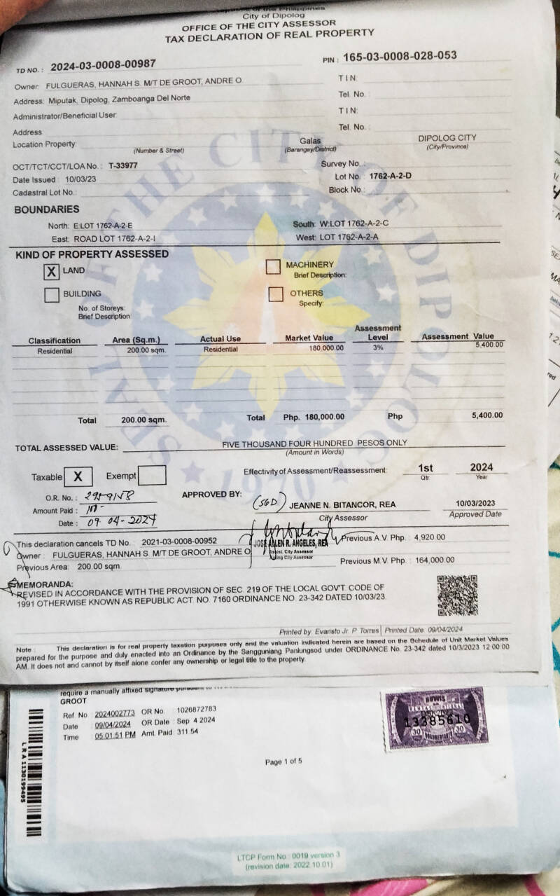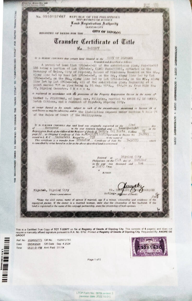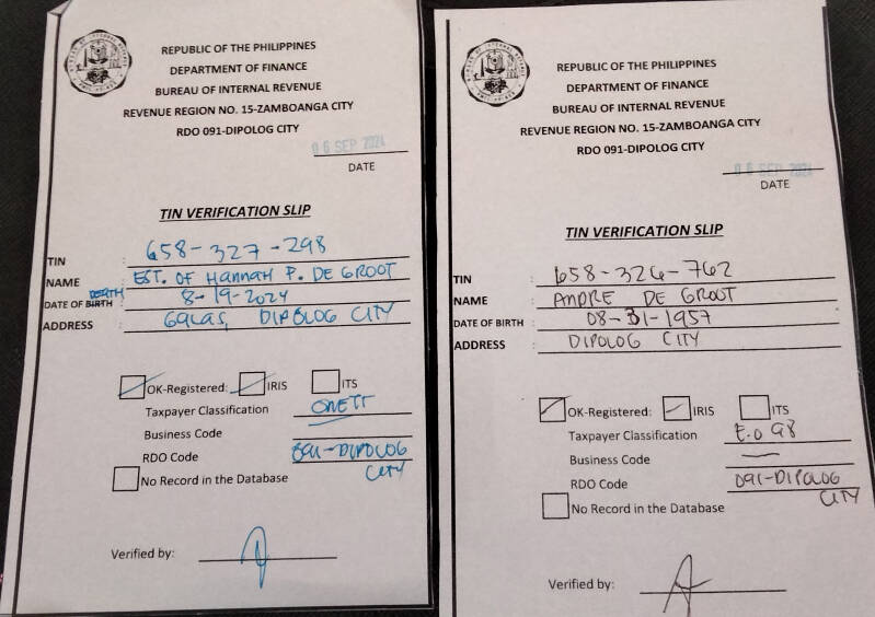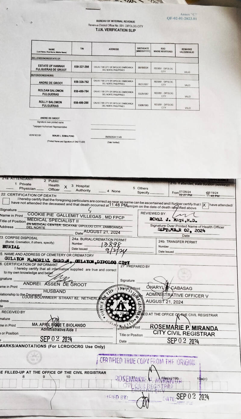 Last of the series I spoke to Mr. Ra Hechanova, the so-called Onett Officer, I thought he was some kind of director, I was on my way to copy a large pile of papers and payments 3 times, but he stopped me and offered to do it for me on the top floor. He arranged everything and I only had to wait 21 days before the whole process was completed. I told him that in 3 weeks I would no longer be in Dipolog and already in the Netherlands. Well then I had to go to a Notary office to have everything arranged by someone else in my name. I finally ended up with my cousin Leira as someone I really trust.